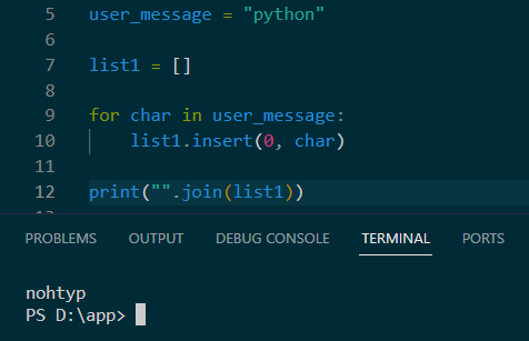 range를 이용하여 -1씩 인덱스를 바꾸어 다시 출력함.
