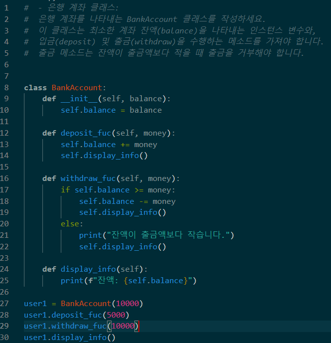 메서드에서 self.메서드명()으로 메서드를 불러와 실행할 수 있다. print를 일괄 수정할 때 사용하면 편하다.